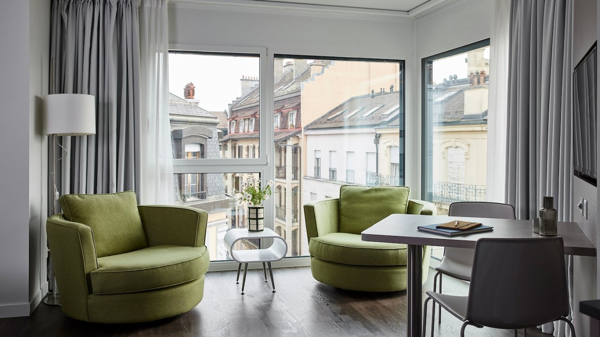 Im Herzen von Nyon, nur 50 Meter vom Bahnhof entfernt, verbindet Base Nyon urbanen Komfort mit Weitblick auf den Genfersee und die französischen Alpen. Die modernen Apartments mit voll ausgestatteter Küche, Kingsize-Bett und Regendusche bieten stilvolle Funktionalität.