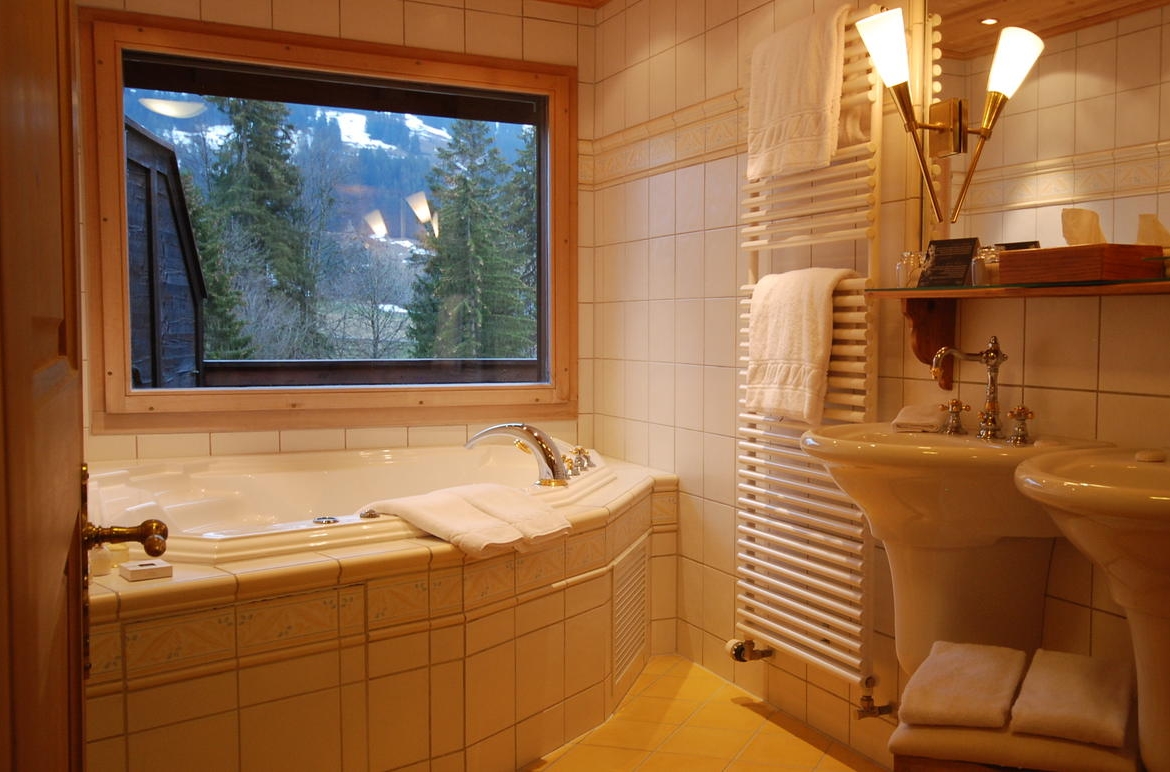 40m² auf zwei Zimmer aufgeteilt - Schlafzimmer mit Doppelbett (160cm) und Wohnzimmer mit Galerie und zwei Einzelbetten. Das Zimmer liegt zur Strassenseite mit einer Aussicht auf das Chaletdorf Schönried und den Rellerli Berg. Es ist mit einem Badezimmer mit Badewanne, Toilette, TV/DVD, Wifi, Minibar, Nespresso-Maschine und Safe ausgestattet.Zimmerausstattung