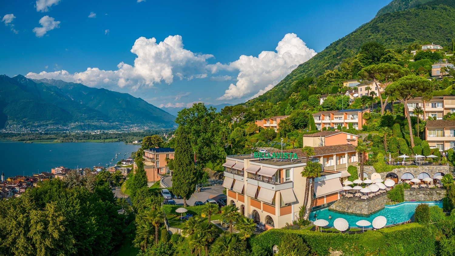 In Vira Gambarogno, inmitten südlicher Vegetation, an bevorzugter Hanglage auf natürlich gewachsenen Terrassen, liegt das Hotel Bellavista. Der Blick weit über den Lago Maggiore, über Locarno und Ascona hinweg in die Täler der Verzasca, der Maggia und ins Centovalli, lädt zum angenehmen Verweilen ein. Vollkommen egal, ob Sie in Ihren Ferien entspannen, aktiv sind oder tiefer in die Tessiner Kultur eintauchen möchten, das Bellavista ist der zentrale Ausgangspunkt für Ihre Erkundungs- und Erlebnistouren.