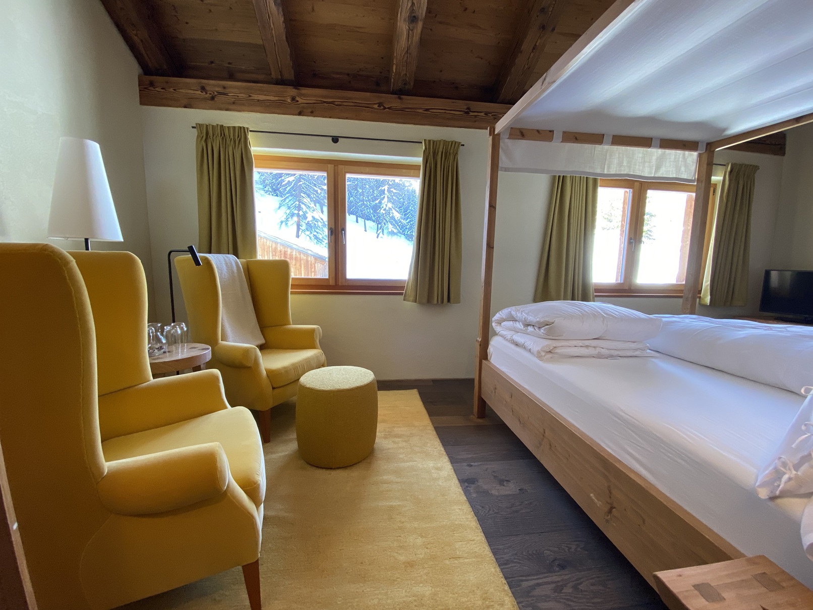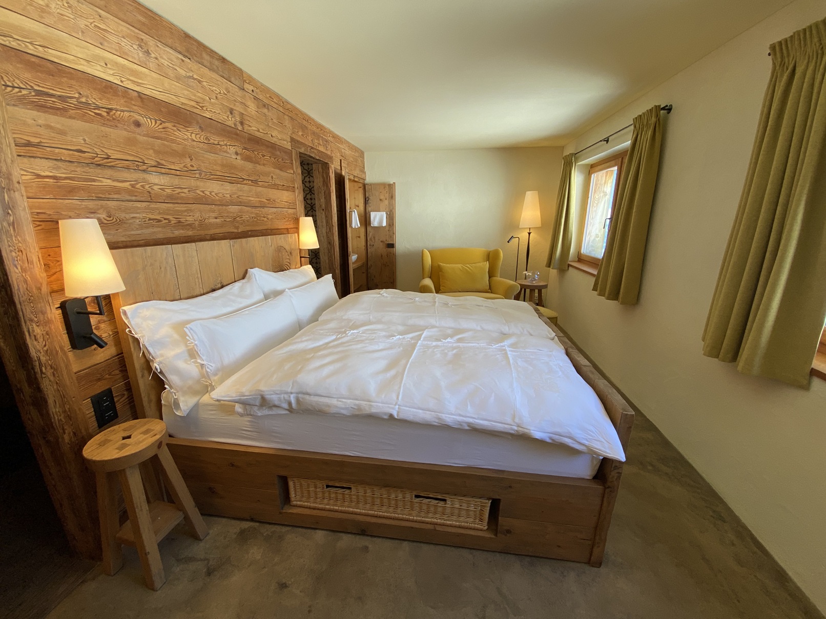 Experience the charm of the newly built rooms at Tgiesa Gantner. The new, modern rooms are equipped with lots of old wood and sand-clay floors and are just as individual as our guests. Also in this category are 2, directly under the gable located Dairyman Rooms in the 300 year old Tgiesa Fux. These two Dairyman Rooms impress with a lot of room height and the authentic design of the traditional Maiensass.