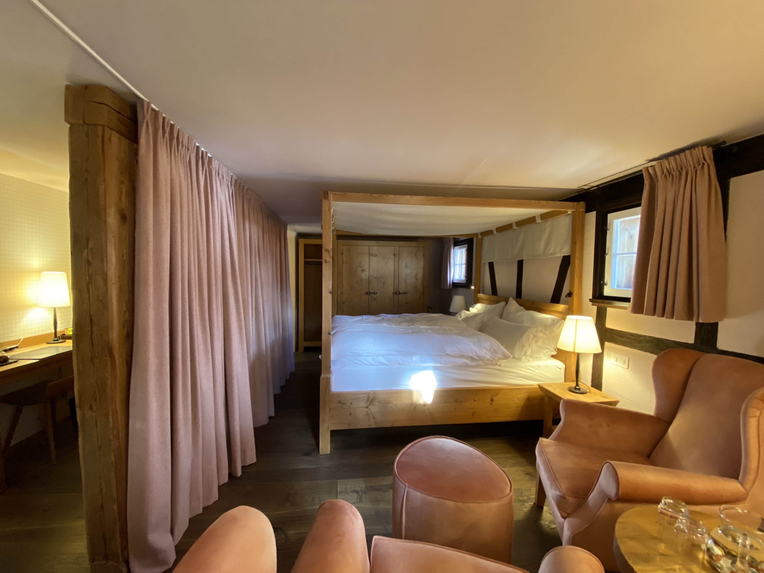 Stay in our most authentic Maiensass room! The centuries-old walls best combine the Maiensass feeling with top-notch comfort. Some rooms feature a separate living area, but all are guaranteed to be in the up to 300-year-old Maiensass. Each of the uniquely furnished Mountain Pasture Rooms is distinct and perfect for your first Maiensass experience.