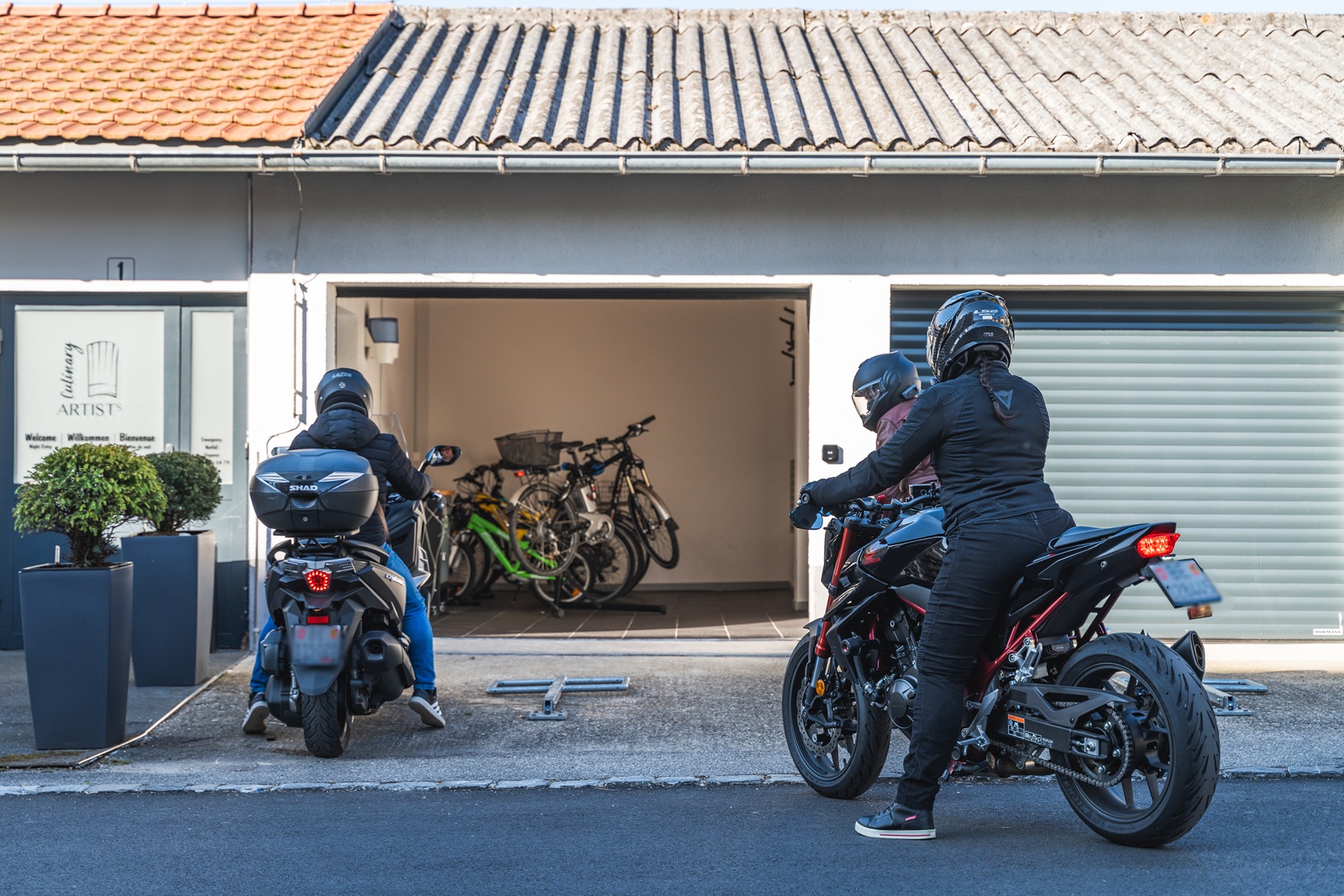 Vous pouvez garer votre vélo gratuitement et en toute sécurité dans notre garage à vélos. Il est possible d’y recharger les vélos électriques et d’effectuer de petites réparations. Les motos peuvent également être stationnées chez nous.
